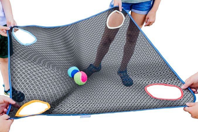 Beim Spiel mit unserem Balancetuch sind Geschicklichkeit, Ausdauer und Teamgeist gefragt. Nur wer perfekt zusammenarbeitet, bekommt alle Bälle in das passende Loch. Im Wettstreit mit einer zweiten Gruppe macht das Spiel gleich doppelt soviel Spaß.